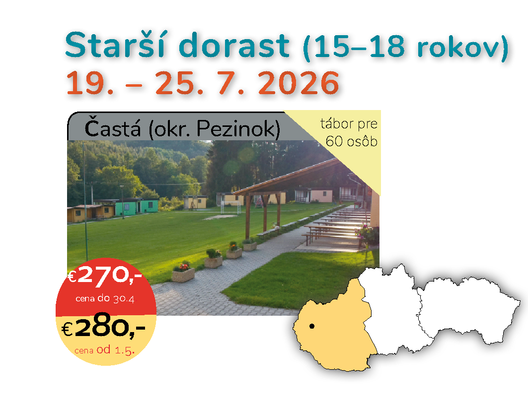 Ak máte záujem o ďalšie informácie ohľadne tohto tábora, kontaktuje nás prosím na telefónnom čísle: 02/5556 9378, alebo emailom na adrese: detskamisia@detskamisia.sk (prosíme, do predmetu správy napíšte dátum a miesto turnusu).