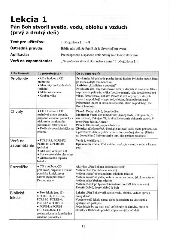 Materiál obsahuje: 6 biblických lekcií s podrobným programom stretnutia, názorné verše na zapamätanie, pracovné listy, menovky a ďalšie prílohy, 23 plnofarebných obrázkov k lekciám (formát väčšia A4).