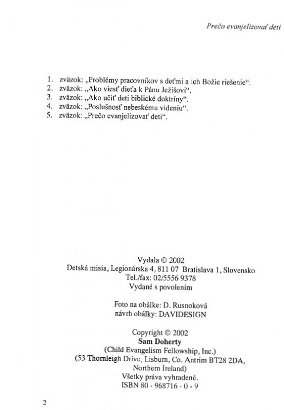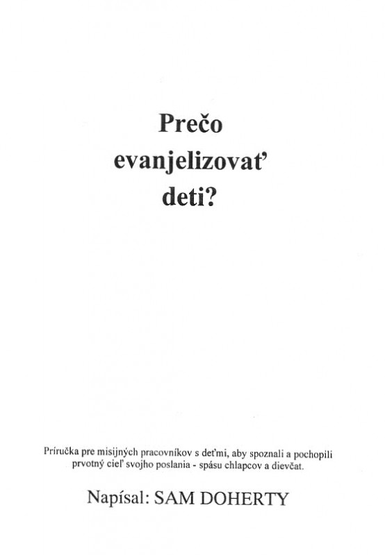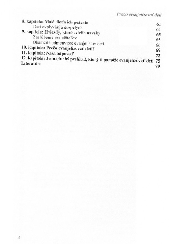 Táto kniha sa zaoberá témami, čo znamená evanjelizovať deti, prečo, ako, kedy a kde ich evanjelizovať.