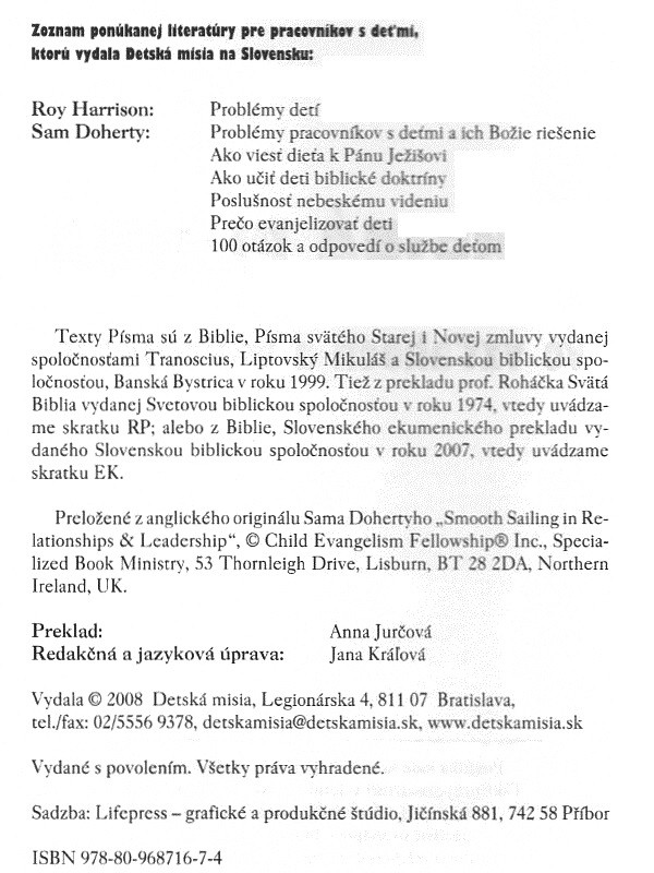 Odpovede na tieto a mnohé ďalšie otázky na tému osobných vzťahov a vodcovstva nájdete v tejto knihe Sama Dohertyho.