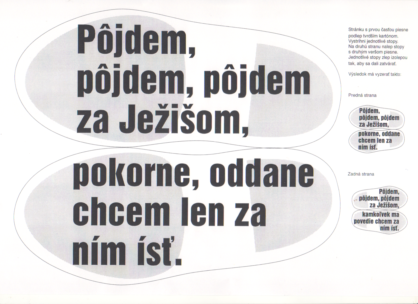 Text piesne vytlačený na hrubšom papieri (160g) formátu A3, z ktorého si môžete podľa návodu vyrobiť jednoduchú vizuálnu pomôcku na spev s deťmi. K textu sú priložené aj noty s akordami.