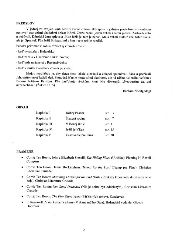 Corrie zostala verná a pevná v Pánovi napriek teroru 2. svetovej vojny a nebezpečenstvu ukrývania Židov vo svojom dome a následnom zatknutí a nemeckému koncentračnému táboru. Tento pravdivý príbeh bude v piatich častiach inšpirovať deti, ktoré vyučujete, aby mali podobný postoj vo svojich životoch.