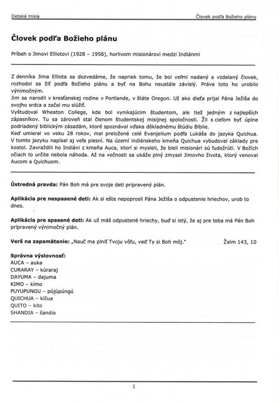 Jednolekciovka Človek podľa Božieho plánu ponúka vzrušujúci životný príbeh Jima Elliota – muža, ktorý sa rozhodol žiť podľa Božieho plánu a byť na Bohu neustále závislý.