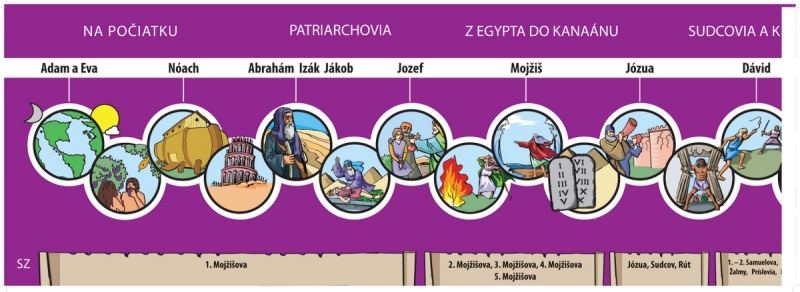 Balíček obsahuje farebnú časovú os, pexeso, osemsmerovky, plagát s knihami Starého a Nového zákona, nápady na hry a iné. Môžete ho využiť v besiedke, v klube alebo doma.