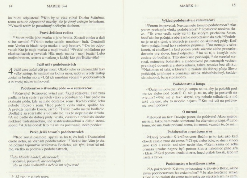 Slovenský ekumenický preklad, ktorý vydala Slovenská biblická spoločnosť spolu s Detskou misiou v roku 1996.