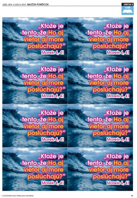 V manuáli nájdete nasledujúce biblické lekcie: Kráľ Ježiš a Jeho kráľovstvo, Ježiš: Boh, ktorý má všetko pod kontrolou, Ježiš nasýti obrovský zástup, Samaritán hovorí: „Ďakujem!“, Ježiš: Boží Syn. K dispozícii je manuál pre učiteľa s kompletným programom stretnutí, flashcard a CD, kde nájdete manuál v PDF, obrázky v programe Power Point® a balíček pomôcok v PDF.