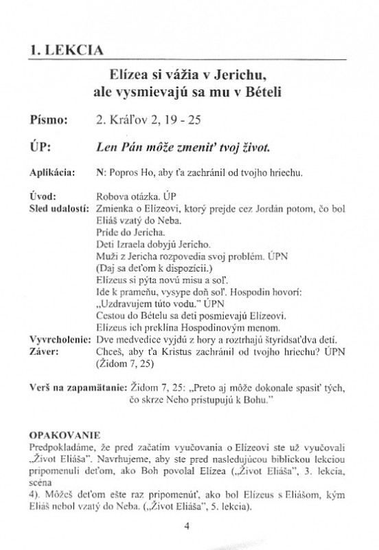 - názorné pomôcky veršov na zapamätanie formátu A3 (Žid 7, 25; Žid 11, 6; 1. J 1, 7),