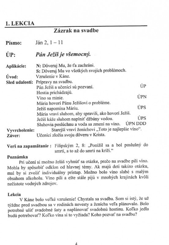 Flanelové obrázky k šiestim lekciám - Ježišov zázrak na svadbe, tajnú návštevu Nikodéma, rozhovor so Samaritánkou, uzdravenie stotníkovho syna i Bartimea a vzkriesenie Jairovej dcéry.