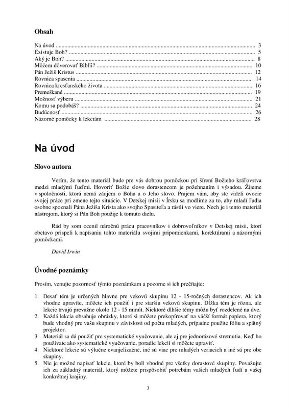 Témy sú spracované jednoduchým a príťažlivým spôsobom pre 12 - 15- ročných dorastencov.