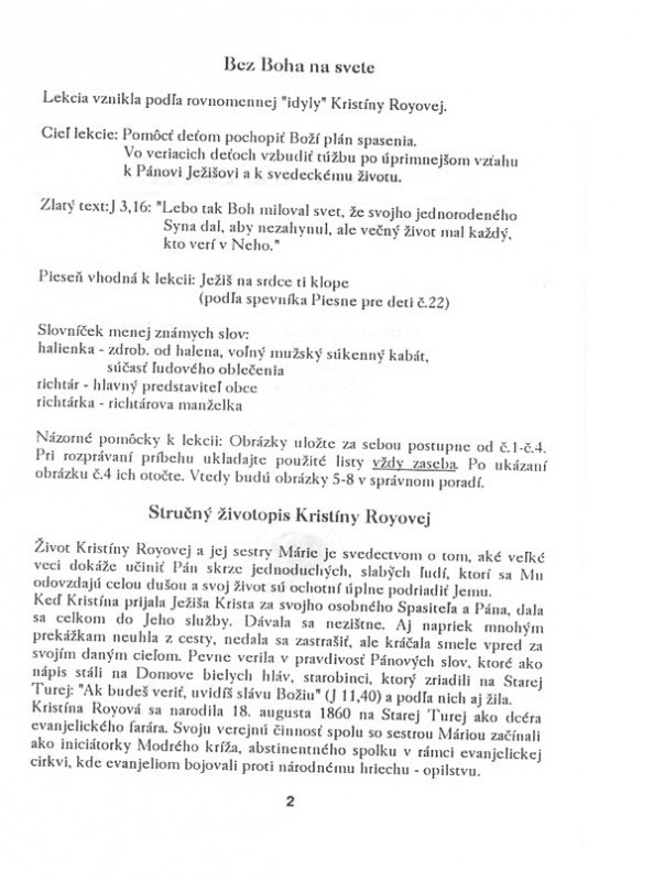 Plnofarebné obrázky od maliara Jána Hálu (formát A4) a text lekcie.